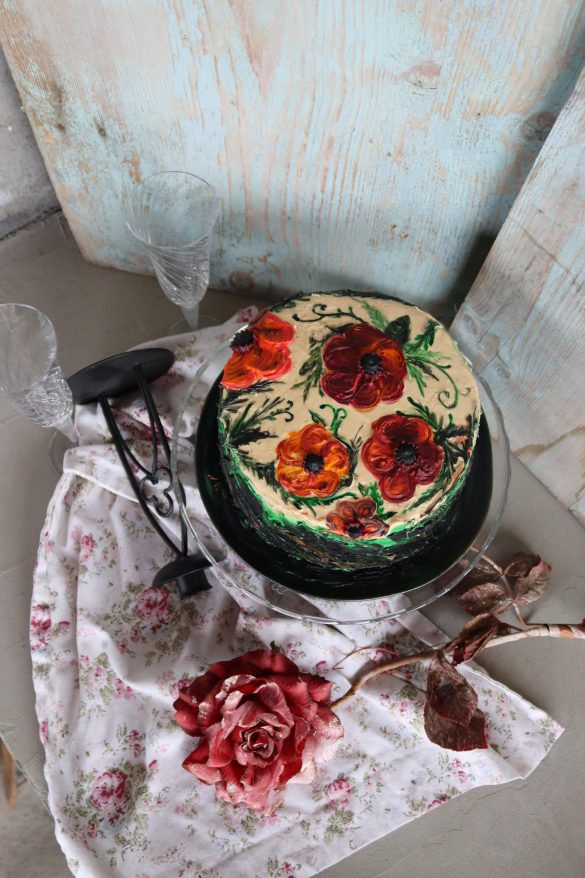 Вземете шпатула за рисуване и четки в различни размери за рисуване. Проявете въображение и изрисувайте тортата. Далеч не е нужно вашата да изглежда като моята.