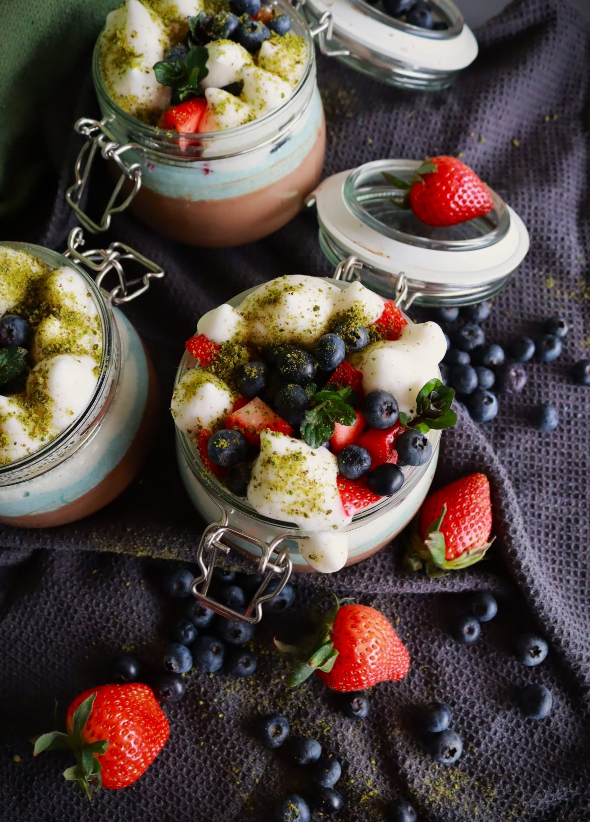 За мен това е идеалната закуска. Защо ли? Свежа е заради пресните плодове в нея. Сладка е от бананите в крема. Има лек горчив привкус от натуралното какаото. Лека е заради аквафабата, която придава една „облачност“. Кремообразна е заради млякото. Засищаща е благодарение на блока овесени ядки. В същото време е чудесен източник на витамини, минерали и фибри. А добавката от инулин превръща тези плодови кремчета и в източник на пребиотик.