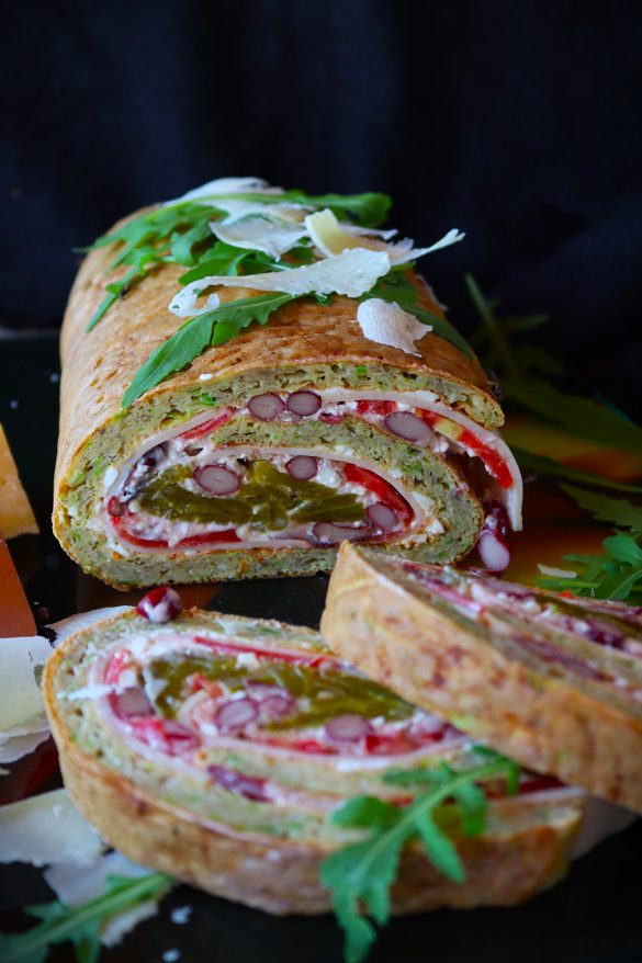 Някак си в тези жеги все към природата ме влече, към плажа, към планината или парка с приятели и не ми се стои много в кухнята. Влизам и приготвям няколко неща, че да има за 3-4 дни нещо домашно приготвено за хапване. Така преди 2 дни изпекох едно бързо Руло с тиквички и шунка. Напълних го с възможно най-свежи зеленчуци от градината за по-пълноценно блаженство. И ето днес ви споделям рецептата за това Руло с тиквички и шунка – прекрасния наш обяд.