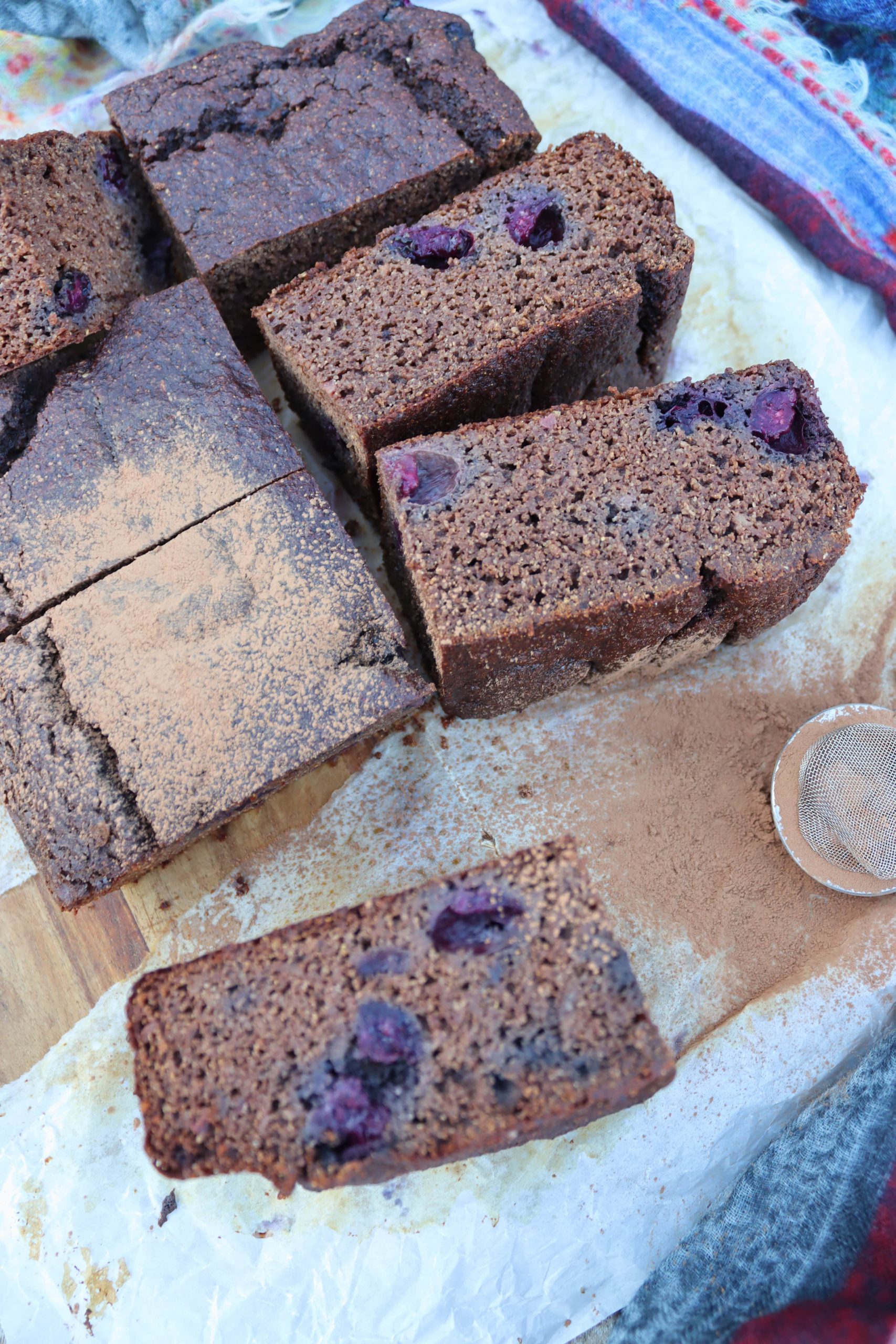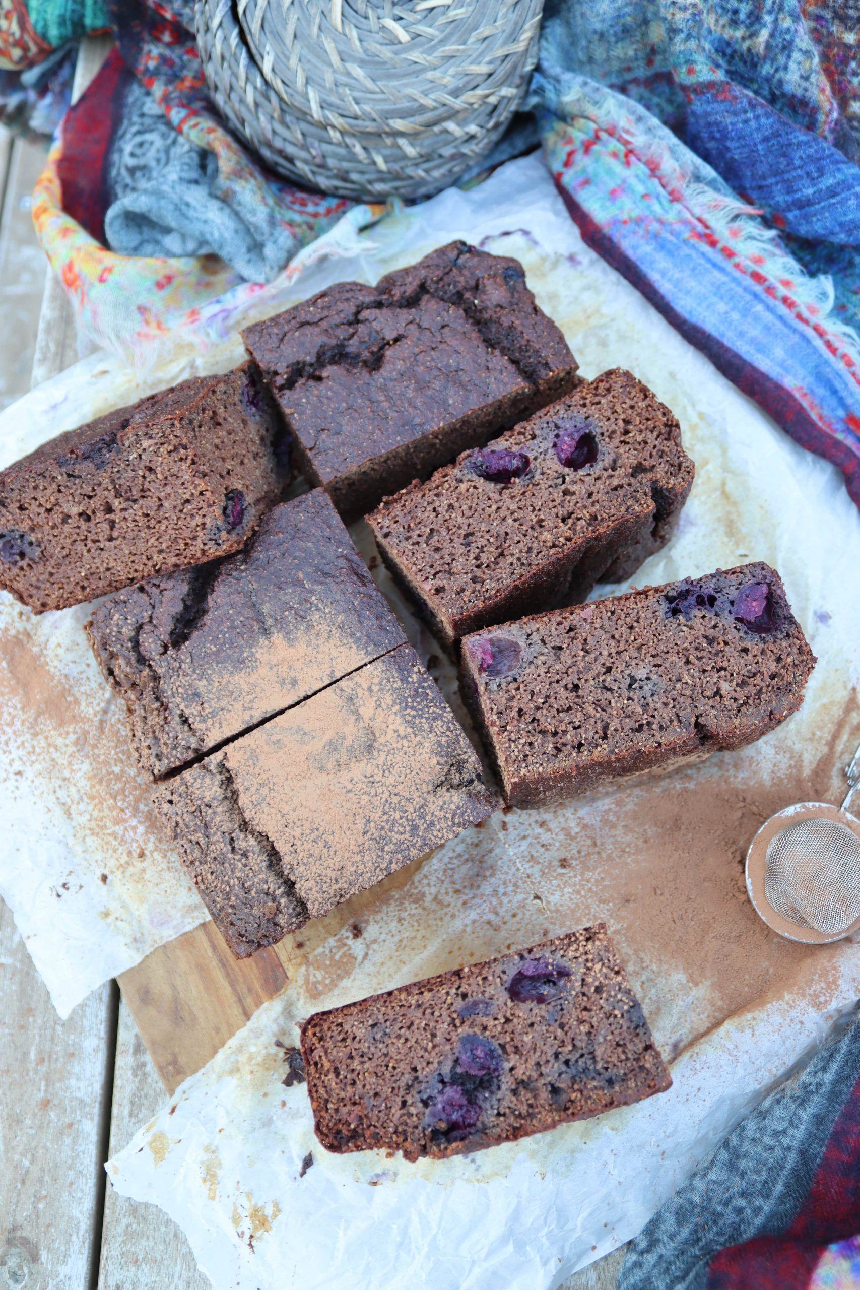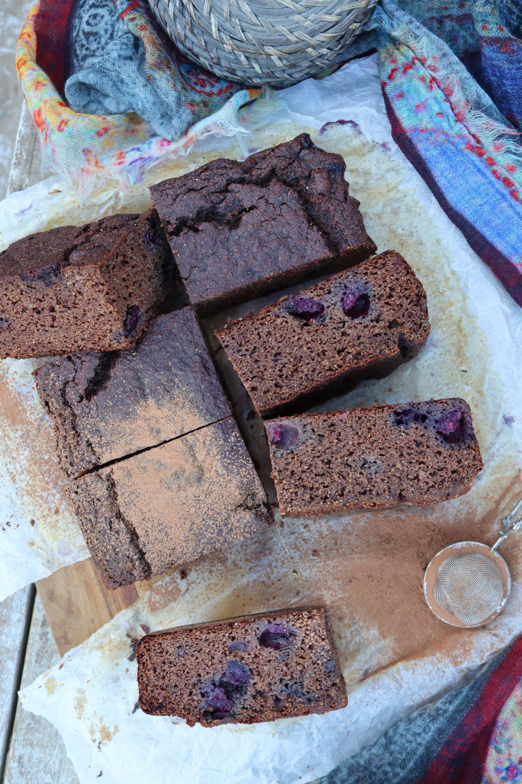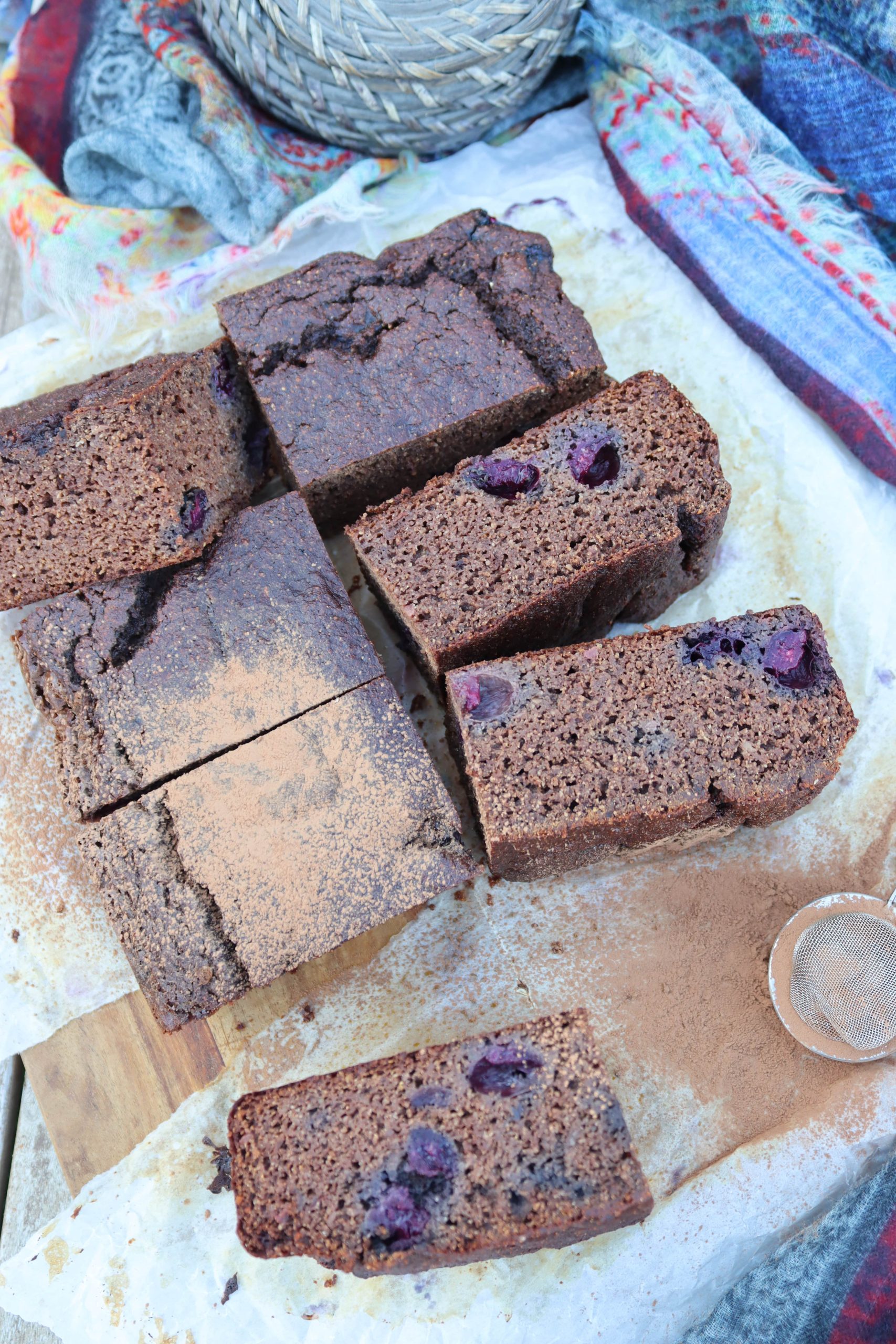 Сухите съставки дипете при мокрите и разбийте до еднородност на тестото. Добавете боровинките и разбъркайте внимателно. Изсипете в тавичката и сложете да се пече за около 40-45 минути.