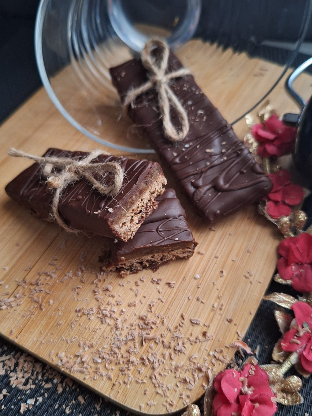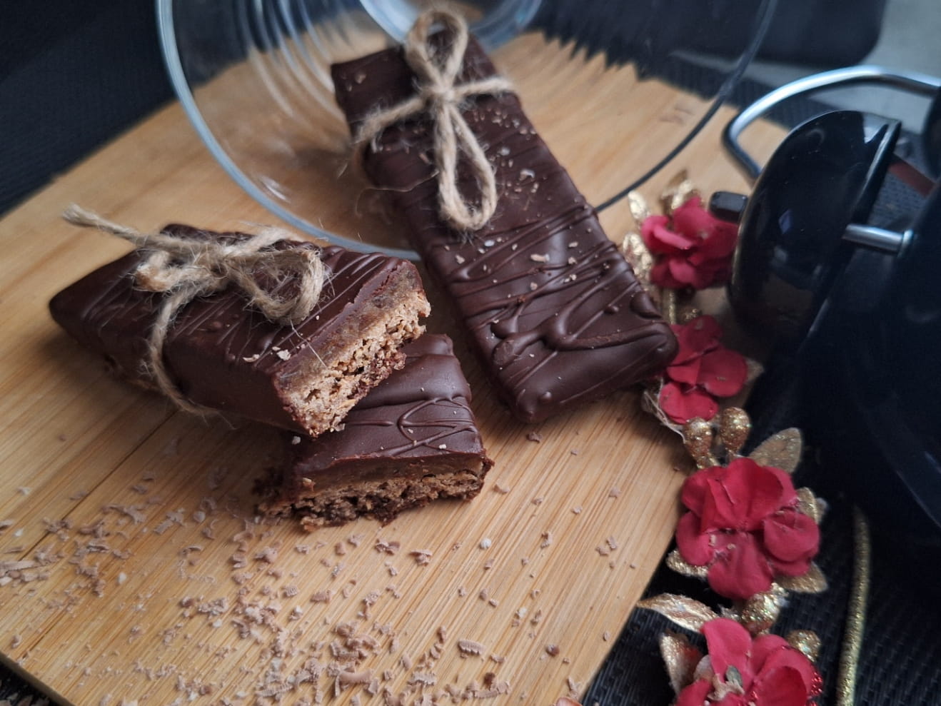 Веган протеинови барчета с шоколад – десерт без захар и глутен. Получиха се някак случайно, докато търсех да преоткрия любовта си към шоколада. Свободата да се смесват вкусове и текстури са сякаш моята сила да творя.