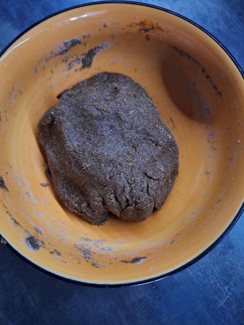 Вземете голяма купа и пресейте заедно всички сухи съставки. В друга разбийте жълтъците с кокосовото масло и млякото. Налейте ги при сухите съставки и замесете меко тесто. Увийте в стреч фолио. Сложете в хладилника за 30 минути.